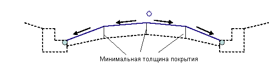 Минимальная толщина покрытия в точках четверти пролета и гребня. |