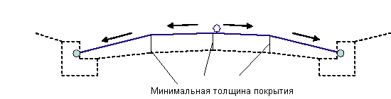 Чтобы получить две точки четверти пролета и точку гребня, расстояние между точками правой и левой кромки делится на четыре. Данные точки отметок рассчитываются с помощью добавления минимальной глубины покрытия к естественному рельефу при данных смещениях.
