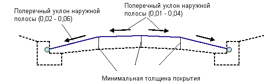 Внутренний и наружный поперечные уклоны дорожного покрытия