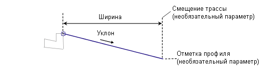 Могут использоваться для переопределения фиксированного значения параметра "Ширина" и привязки конца звена к смещенной трассе. Следующие типы объектов могут использоваться в качестве целевых для указания смещения: трассы, полилинии, характерные линии и фигуры съемки. |