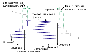 Каждый слой имеет собственные параметры создания выступов с внутренней и с наружной стороны. Внутренние и наружные выступы задают дополнительную ширину с наружной или внутренней стороны относительно расположенного непосредственно над ним слоя дорожного покрытия.