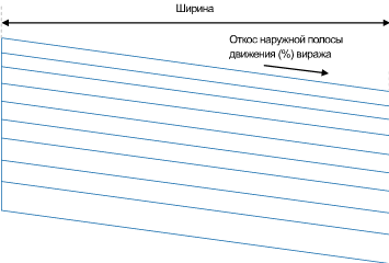 | Поперечный уклон виража | Определяет поперечный уклон виража для полосы движения | Список вариантов выбора | По умолчанию |