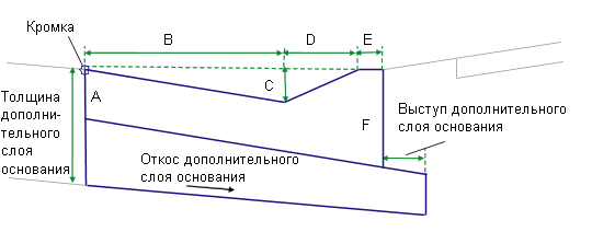 Элемент определяет, следует ли применить для дополнительного слоя основания поперечный уклон виража наружной полосы, или задать числовое значение поперечного уклона в % |