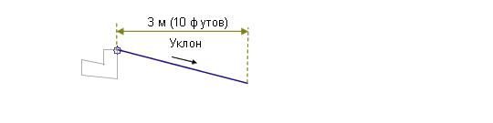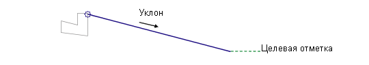 От точки привязки в направлении вставки при заданном откосе добавляется звено, достигающее конечной отметки или профиля. Если конечная отметка находится выше точки привязки, применяется значение откоса вверх, в противном случае используется отрицательный откос.