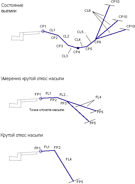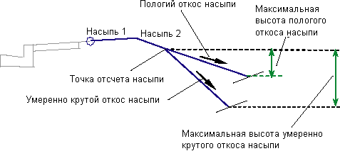 Откос насыпи, который используется в случае, если звено "Умеренно крутой откос насыпи" превышает значение "Максимальная высота умеренно крутого откоса выемки". |