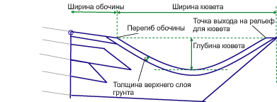 | Ширина кювета | Задает ширину кювета от точки отсчета обочины. | Числовое, положительное |