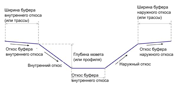 | Буфер наружного откоса | Позволяет размещать буфер перед наружным откосом (нулевое значение - пропустить) | Числовое, положительное |