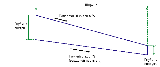 | Стандартный поперечный уклон | Стандартный поперечный уклон поверхности формы. Это значение используется, если поперечный уклон виража не применяется или не задан для трассы базовой линии. |