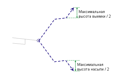 Точка отсчета для условия выемки или насыпи. Применимо только к внутреннему краю действительного звена, оканчивающегося выходом на рельеф. |