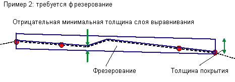 Минимальный вертикальный зазор между существующей поверхностью и низом слоя покрытия. При положительных значениях звено нижнего края покрытия размещается над существующей поверхностью, создавая под покрытием слой "Выравнивание". При отрицательных значения звено низа покрытия размещается под существующей поверхностью, создавая слой "Фрезерование", совпадающий с участком слоя "Покрытие". |