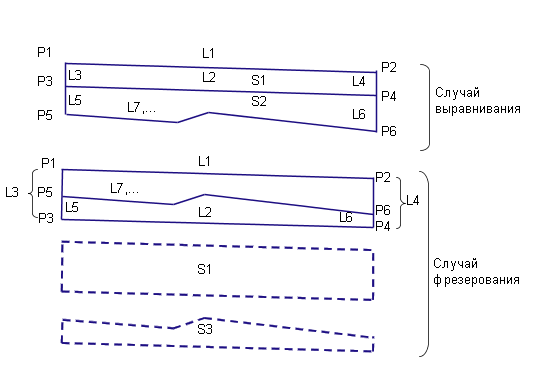 Звенья покрытия. Следует обратить внимание на то, что L3, L4 выполнены от нижнего к верхнему краю покрытия в обеих случаях - "Выравнивание" и "Фрезерование" |