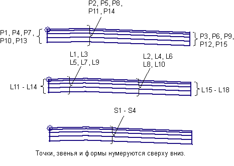 В следующей таблице для этого элемента конструкции перечислены коды точек, звеньев и форм, для которых имеются назначаемые коды. Коды точек, звеньев или форм данного элемента конструкции, которым коды не назначаются, в таблице не приводятся.