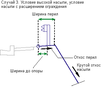 Точка отсчета для условия насыпи с расширением ограждения |