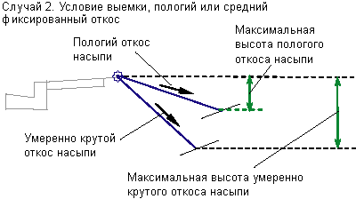 Откос насыпи, который используется в случае, если звено "Умеренно крутой откос насыпи" превышает значение "Максимальная высота умеренно крутого откоса выемки". |