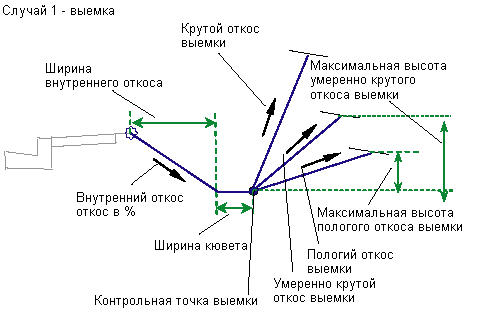 Откос выемки, который используется в случае, если звено "Умеренно крутой откос выемки" превышает значение "Максимальная высота умеренно крутого откоса выемки" |