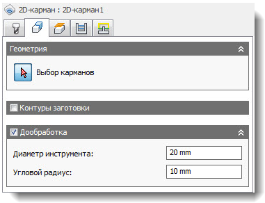Включение параметра "Дообработка" в операции 2D карман