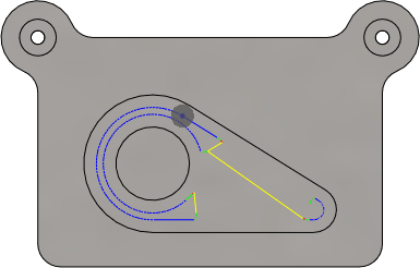 Например, если черновая обработка начата с использованием инструмента диаметром 20 мм, который проходит не во всех областях заданного кармана, то необходимо выполнить другую операцию 2D кармана с использованием меньшего инструмента и указать значение 20 мм для параметра Диаметр инструмента остаточного материала.