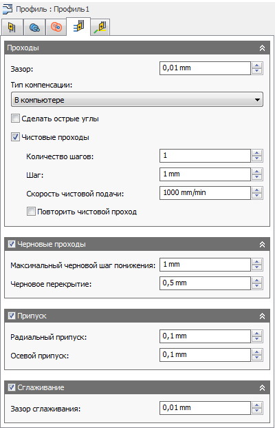 При включении данного параметра выполняются проходы чистовой обработки с помощью боковой части инструмента.