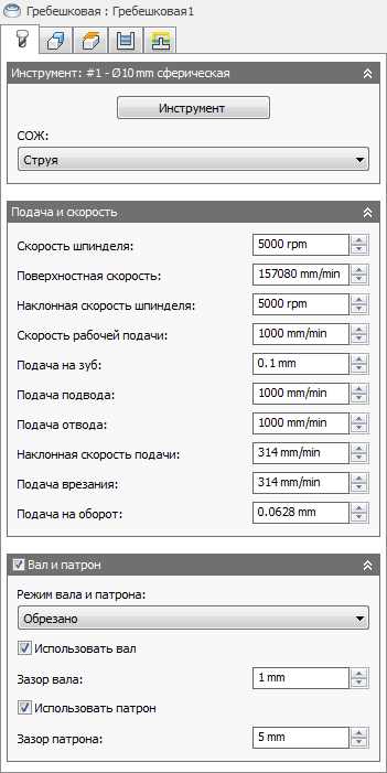 Радиальный и осевой припуски могут быть отрицательным числом. Тем не менее, при использовании сферической или радиусной фрезы с отрицательным значением радиального припуска, превосходящим угловой радиус, отрицательное значение осевого припуска должно быть меньше или равно угловому радиусу.