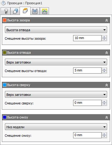 Параметр "Высота сверху" позволяет задать высоту, определяющую верхнюю точку выреза. Значение высоты сверху должно быть выше значения параметра Высота снизу. Параметр "Высота сверху" используется вместе с последующим смещением для задания высоты.