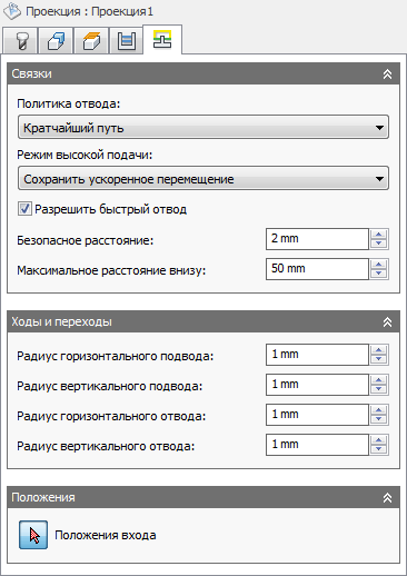 Управление способом перемещения инструмента между проходами резания. На следующих рисунках показано использование метода на основе расхода.