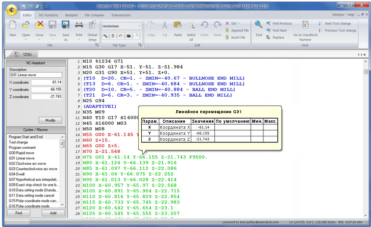 , чтобы сформировать программный файл ЧПУ. По умолчанию открывается Inventor HSM Edit, в котором можно просматривать и моделировать код программы, а затем передать его на устройство управления станком.