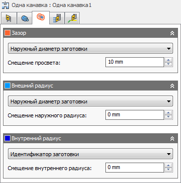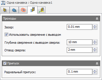 При изменении значения радиального припуска для осевого припуска автоматически задается аналогичное значение. Задать осевой припуск можно и вручную.