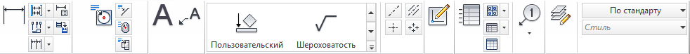 Для добавления размеров используются команды на вкладке "Пояснение", которая изображена на следующем рисунке. Для просмотра подсказки наведите указатель мыши на рисунок.
