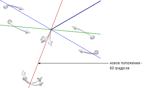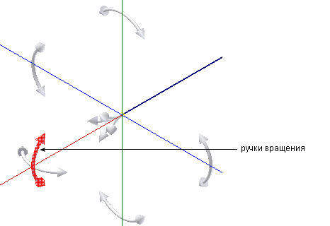 Чтобы использовать "Ручки вращения", щелкните и перетащите стрелку, указывающую на желаемое угловое местоположение. Привязка осуществляется с равным шагом, размер которого определен в команде "3D привязка угла". Это значение задается на вкладке "Сервис"