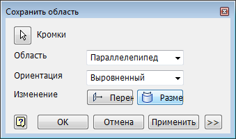 - Если для параметра Изменение размеров задано значение Размер, настройте размер сохраненной области, перетаскивая стрелки на ее границе. Можно управлять высотой, длиной и шириной прямоугольника, радиусом и длиной цилиндра.
