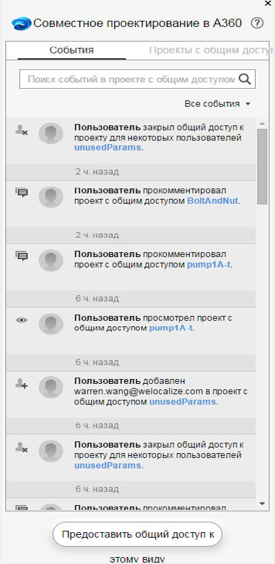 Участники, использующие в Inventor 2016 R3 или Inventor 2017 и авторизованные в A360 в Inventor, могут совместно работать над проектом непосредственно из Inventor.