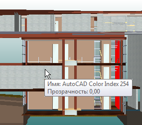 Прим.: При наведении курсора на объект, не обладающий запрашиваемым свойством, приложение Autodesk Navisworks ищет в дереве выбора родительский объект, содержащий соответствующую информацию, и отображает ее, что позволяет пользователю получить максимальный объем полезной информации.