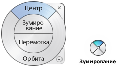 Прим.: При отображении мини-штурвала можно нажать и удерживать среднюю кнопку мыши для панорамирования, вращать колесико мыши для увеличения и уменьшения масштаба изображения и удерживать клавишу SHIFT, одновременно нажимая и удерживая среднюю кнопку мыши, для перемещения модели по орбите.