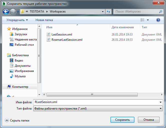 введите имя нового рабочего пространства. Можно выбрать имя существующего рабочего пространства, чтобы заменить его файлом с измененной настройкой.