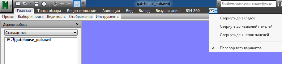 - Перебор всех: перебор всех четырех состояний ленты в следующем порядке: развернутая лента, свернутая до кнопок панелей, свернутая до заголовков панелей, свернутая до вкладок.
