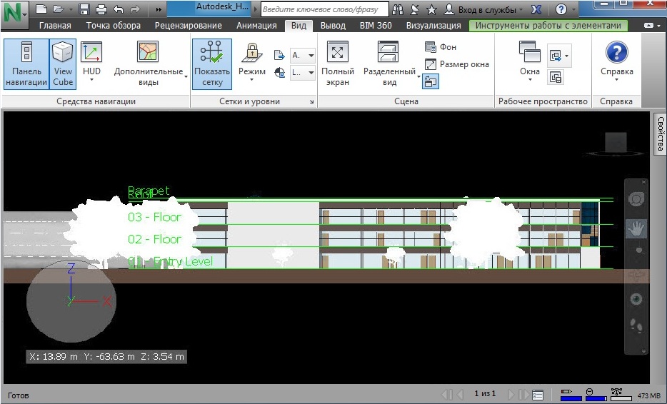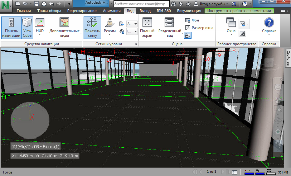 Системы сеток можно применять к моделям в Revit перед их импортом в Autodesk Navisworks.