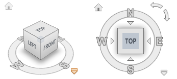 Компас отображается под инструментом ViewCube (Видовой куб) и указывает, в каком направлении в модели определен "север". Можно щелкнуть на букве направления главного румба на компасе для поворота модели либо щелкнуть и перетащить одну из букв направлений главных румбов или кольцо компаса для интерактивного поворота модели вокруг точки вращения.
