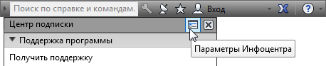Инфоцентр — функция, которая используется в нескольких продуктах Autodesk. В нем на правой стороне строки заголовков содержится набор инструментов, предоставляющих доступ к многим источникам информации, связанным с продуктами. В зависимости от продукта Autodesk и конфигурации эти инструменты могут отличаться. Например, в некоторых продуктах на панели инструментов Инфоцентр может также быть кнопка Вход для служб Autodesk 360 или ссылка на Autodesk Exchange.