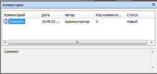 В окне "Комментарии" представлены имя, время и дата, автор, код (ID), состояние и тема (или первая строка) каждого комментария. Существуют различные значки, позволяющие с первого взгляда определить источник каждого комментария.