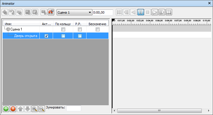 Окно "Аниматор" представляет собой плавающее окно, которое служит для добавления анимаций в модель.