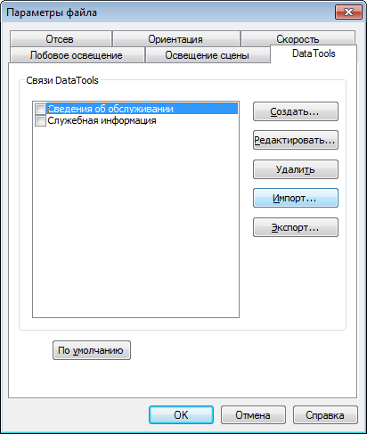 2. В диалоговом окне Параметры файла на вкладке "DataTools нажмите кнопку "Импорт".