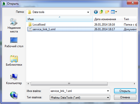 3. В диалоговом окне "Открытие файла" перейдите в папку, содержащую необходимый файл datatools, выберите его и нажмите кнопку "Открыть".