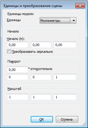 1. Правой кнопкой мыши щелкните нужный 3D файл в дереве выбора и выберите в контекстном меню пункт Единицы и преобразование сцены.