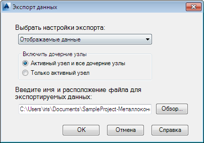 В экспорт добавляется выбранный узел и все его дочерние узлы.