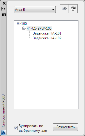 Каждый узел в дереве проектов соответствует сегменту лини на чертеже P&ID.