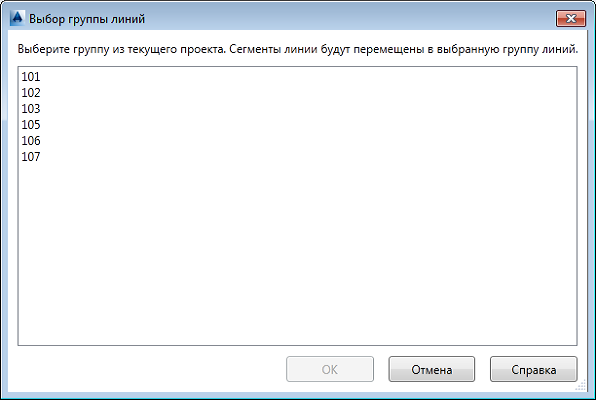 Отображение списка существующих групп линий. По умолчанию идентификатор (значение идентификатора) группы линий соответствует свойству "Номер линии".
