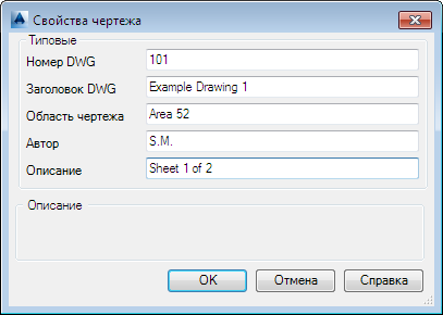 - В поле "Описание" введите описание (например, Проект, к которому принадлежит этот чертеж).
