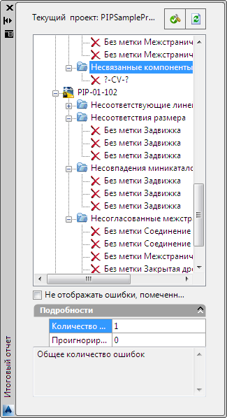 Содержит ошибки, найденные при проверке чертежа, которые можно исправить или пропустить.