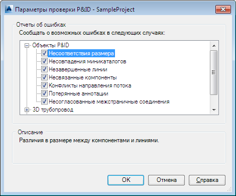 Задает, какие типы ошибок P&ID помечаются. Можно выбрать один из следующих вариантов: