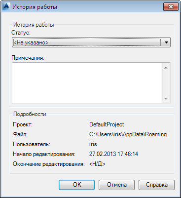 Предоставляет место для ввода примечаний к текущему сеансу редактирования.